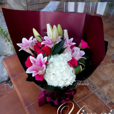 〔使用花材〕粉百合花 紫陽花 玫瑰花 新西蘭 〔花禮尺寸〕約高45 CM 寬40 CM ●〔訂購方式〕網站線上訂購 電話0937157689 LINE: ID9330970 ● 圖中花材因季節缺貨時我們將以同質等花卉替代設計 ● 請在預定送花日前2天完成訂購.付款手續